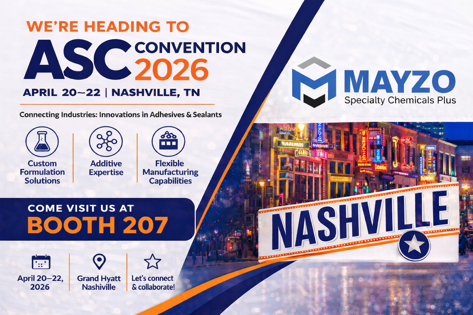 Mayzo will be attending the ASC Annual Convention & Expo 2026, held April 20–22 in Nashville, Tennessee.